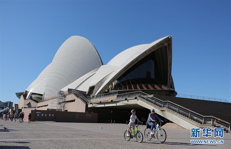 5月10日,在澳大利亞悉尼歌劇院前,少量市民出行游覽。新華社記者白雪飛攝