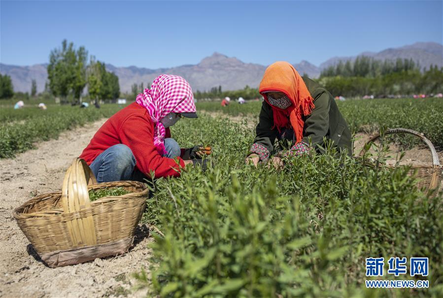 5月11日,采茶工在寧夏百瑞源賀蘭山基地采摘枸杞芽茶。當(dāng)日,寧夏百瑞源賀蘭山基地枸杞芽茶全面進(jìn)入采摘季。據(jù)了解,該基地茶園面積300余畝,助力附近200多名農(nóng)民就業(yè)增收。新華社記者楊植森攝