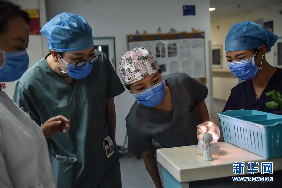 5月11日,在北京地壇醫(yī)院感染二科護(hù)士站,護(hù)士們被在護(hù)士節(jié)收到的禮物——天使玩偶所吸引。北京地壇醫(yī)院是北京市收治新冠肺炎患者的定點(diǎn)醫(yī)院之一,醫(yī)院的醫(yī)護(hù)人員一直奮戰(zhàn)在抗擊疫情的一線。在國際護(hù)士節(jié)前夕,記者前往北京地壇醫(yī)院,記錄下抗疫一線護(hù)士的日常工作狀態(tài)。新華社記者彭子洋攝