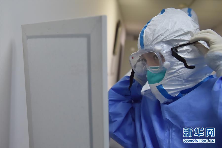 5月11日,在北京地壇醫(yī)院感染二科病房外,護(hù)士劉印懷穿戴防護(hù)設(shè)備準(zhǔn)備進(jìn)入病房。北京地壇醫(yī)院是北京市收治新冠肺炎患者的定點(diǎn)醫(yī)院之一,醫(yī)院的醫(yī)護(hù)人員一直奮戰(zhàn)在抗擊疫情的一線。在國際護(hù)士節(jié)前夕,記者前往北京地壇醫(yī)院,記錄下抗疫一線護(hù)士的日常工作狀態(tài)。新華社記者彭子洋攝