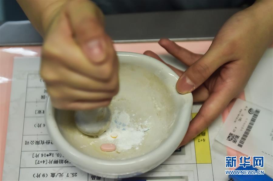 5月11日,在北京地壇醫(yī)院感染二科護(hù)士站,一名護(hù)士為不方便服藥的病人研磨藥片。北京地壇醫(yī)院是北京市收治新冠肺炎患者的定點(diǎn)醫(yī)院之一,醫(yī)院的醫(yī)護(hù)人員一直奮戰(zhàn)在抗擊疫情的一線。在國(guó)際護(hù)士節(jié)前夕,記者前往北京地壇醫(yī)院,記錄下抗疫一線護(hù)士的日常工作狀態(tài)。新華社記者彭子洋攝