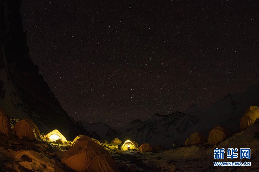 這是海拔6500米的珠峰前進(jìn)營(yíng)地夜景(5月10日攝)。新華社記者孫非攝