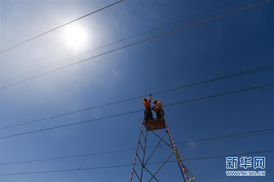 5月12日,中國(guó)鐵路上海局集團(tuán)公司上海高鐵維修段的技術(shù)人員在商合杭高鐵浙江湖州段調(diào)整接觸網(wǎng)導(dǎo)線。近日,商合杭高鐵合肥至湖州段聯(lián)調(diào)聯(lián)試正有條不紊進(jìn)行中。中國(guó)鐵路上海局集團(tuán)公司上海高鐵維修段抽調(diào)49名精兵強(qiáng)將,持續(xù)對(duì)管轄范圍內(nèi)的高鐵線路、信號(hào)、接觸網(wǎng)線進(jìn)行調(diào)試,為下一階段打下基礎(chǔ)。據(jù)了解,商合杭高鐵合湖段聯(lián)調(diào)聯(lián)試之后將轉(zhuǎn)入運(yùn)行試驗(yàn)階段,驗(yàn)收合格并通過(guò)安全評(píng)估后,力爭(zhēng)6月底具備開(kāi)通運(yùn)營(yíng)條件。新華社記者黃宗治攝