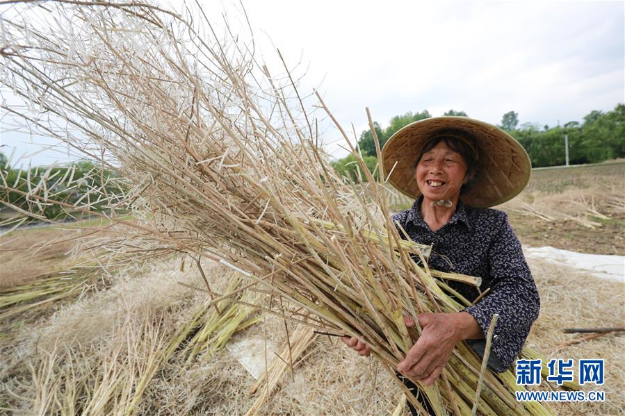 5月13日,在貴州省黔西縣洪水鎮(zhèn)解放村,村民在采收油菜籽。