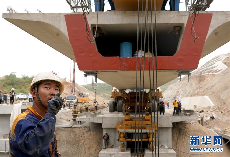 5月13日,中鐵七局的工作人員在位于河南焦作的施工現場指揮架梁作業(yè)。 當日,隨著最后一榀長24米、重552噸的箱梁架設就位,太焦高鐵全線橋梁架設完成。從山西太原到河南焦作的太焦高鐵是國家規(guī)劃建設的“八縱八橫”高速鐵路網的重要組成部分,計劃2020年底建成通車。 新華社記者李安攝