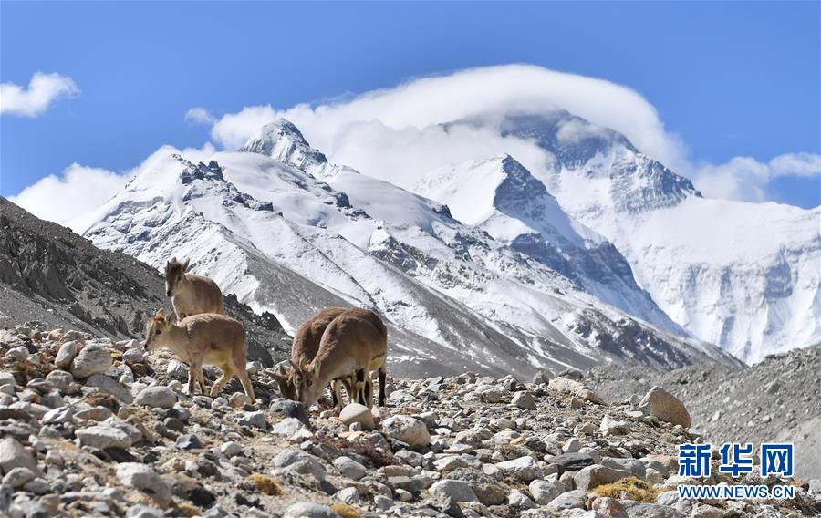 棲息在珠穆朗瑪峰國家級自然保護區(qū)內(nèi)的巖羊(5月8日攝)。新華社記者晉美多吉攝