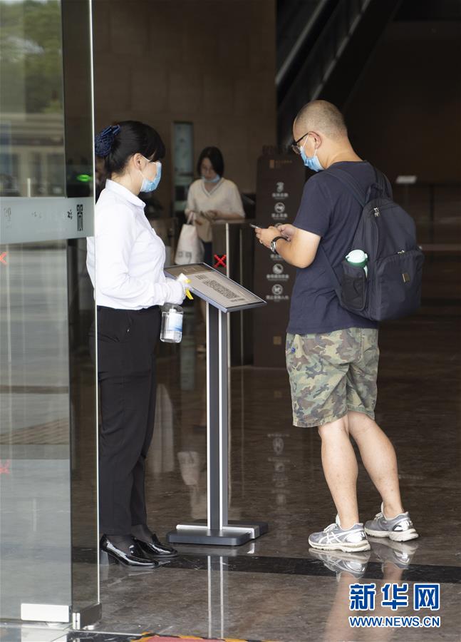 5月17日,在江西省博物館新館,參觀者入館前掃描“健康碼”。江西省博物館新館在做好疫情防控的前提下有序開放,公眾可通過(guò)網(wǎng)上預(yù)約參觀游覽。新華社記者張浩波攝