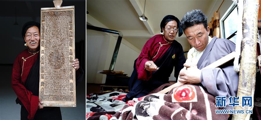 拼版照片:左圖為西藏昌都市江達(dá)縣波羅鄉(xiāng)外沖村村民澤培;右圖為在江達(dá)縣波羅鄉(xiāng)木松民族手工藝有限責(zé)任公司,澤培(左)在指導(dǎo)學(xué)生。澤培是當(dāng)?shù)刂牟_木刻藝人,波羅木刻由于做工繁復(fù),太消耗體能,收入不高,波羅木刻藝人的數(shù)量在過去幾十年間急劇減少。為保護(hù)和傳承波羅木刻,近年來,江達(dá)縣成立了波羅鄉(xiāng)木松民族手工藝有限責(zé)任公司。澤培招收了幾十名學(xué)徒傳授技藝,經(jīng)過練習(xí),學(xué)徒們已經(jīng)成為熟練的木刻藝人,每人每月有4000多元的收入(5月1日攝)。新華社記者詹彥攝