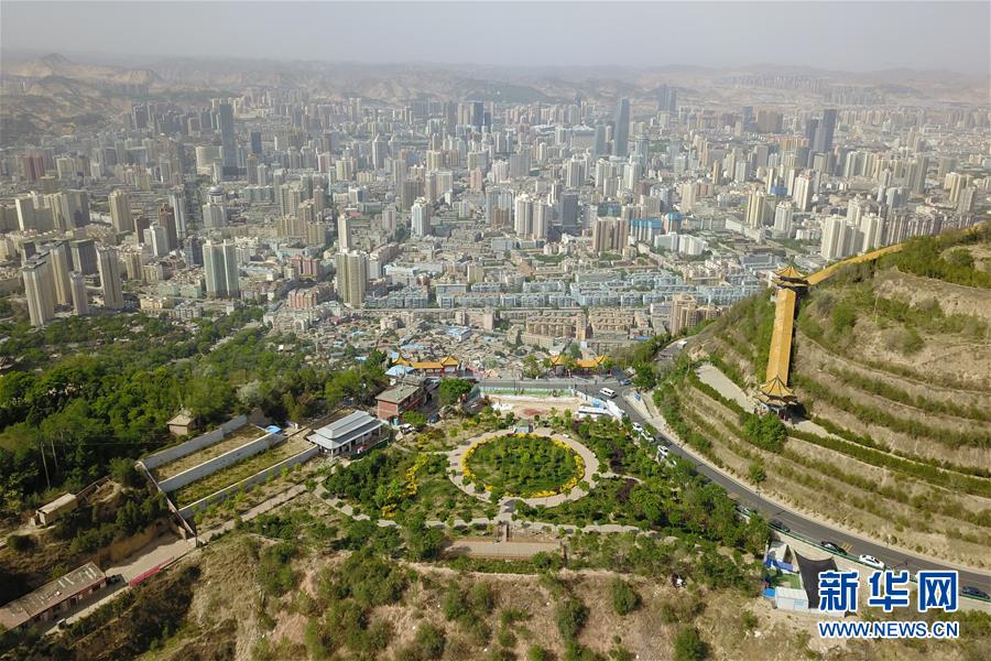 這是5月18日在蘭州市城關區(qū)拍攝的白塔山公園及周邊初夏景象(無人機照片)。新華社記者范培珅攝