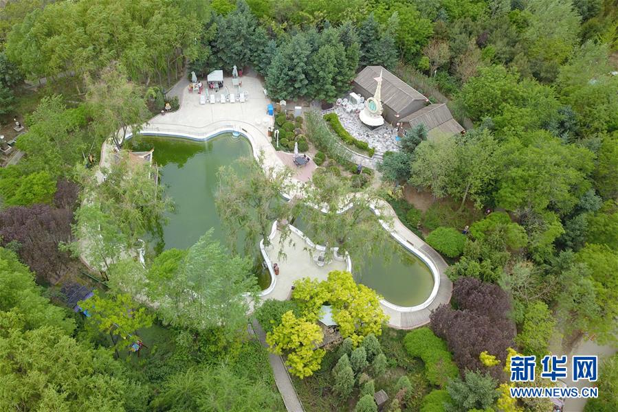 這是5月18日在蘭州市城關區(qū)拍攝的皋蘭山下五泉山公園初夏景象(無人機照片)。