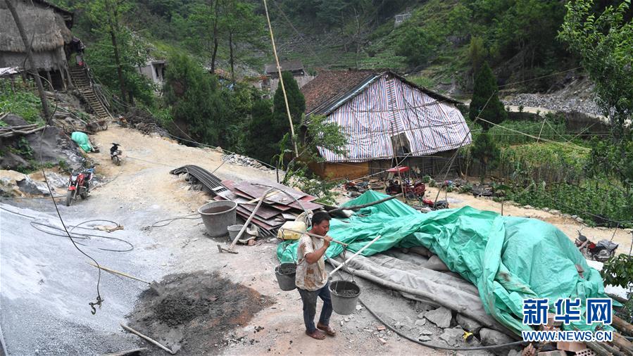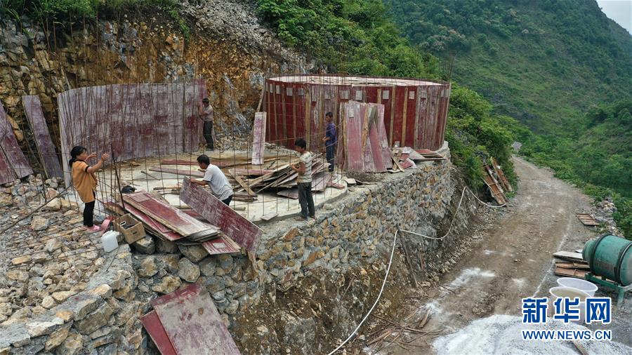 大化瑤族自治縣雅龍鄉(xiāng)勝利村群眾在建設(shè)水柜(2019年6月6日攝)。新華社記者張愛(ài)林?jǐn)z