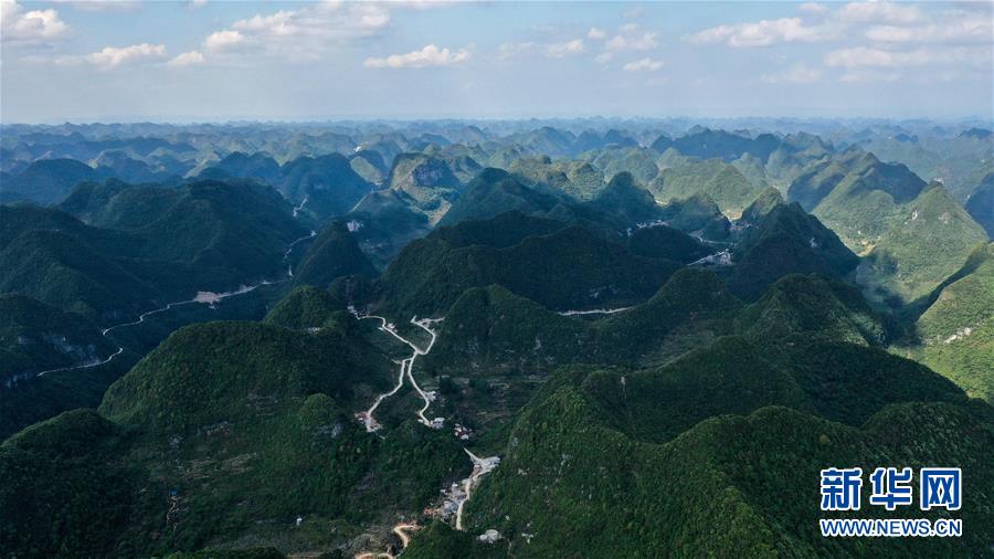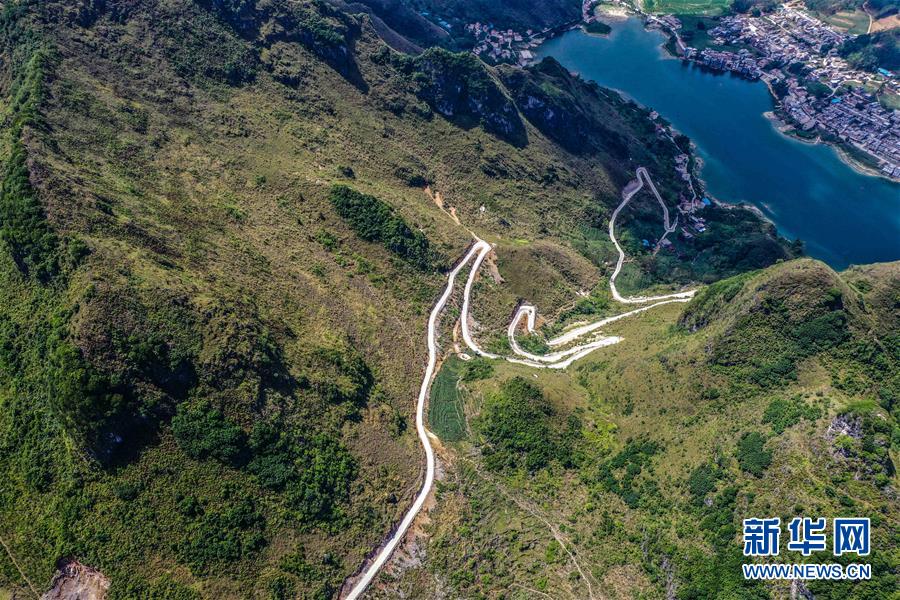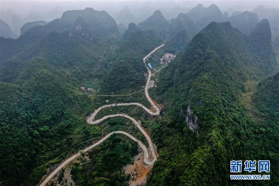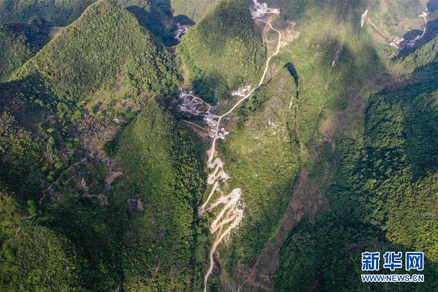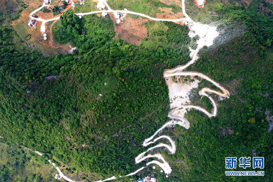 這是通向大化瑤族自治縣七百弄鄉(xiāng)弄平村的山路(5月15日攝,無(wú)人機(jī)照片)。新華社記者曹祎銘攝