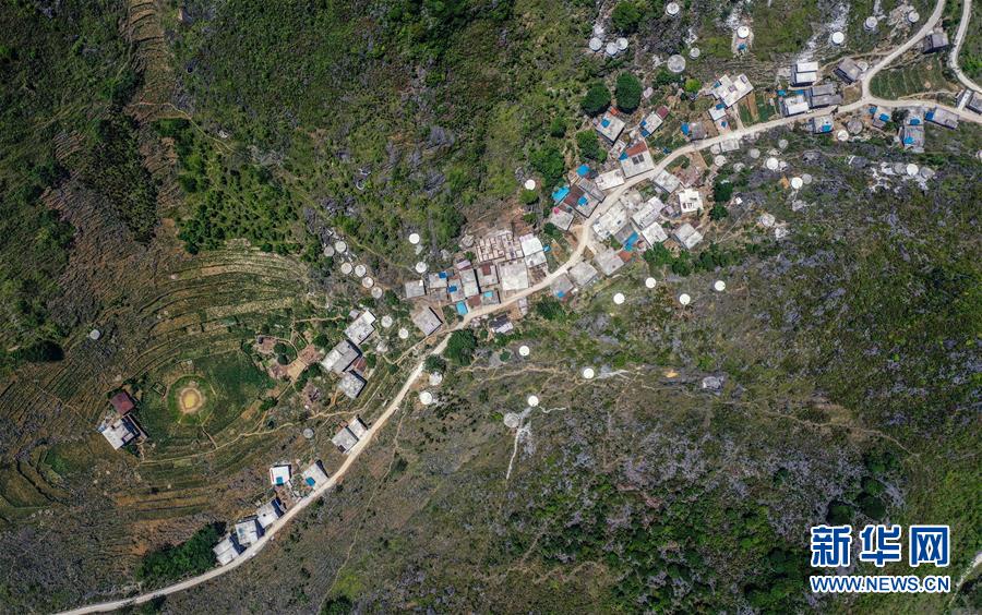 這是大化瑤族自治縣七百弄鄉(xiāng)江棟村的水柜(5月14日攝,無(wú)人機(jī)照片)。新華社記者周華攝
