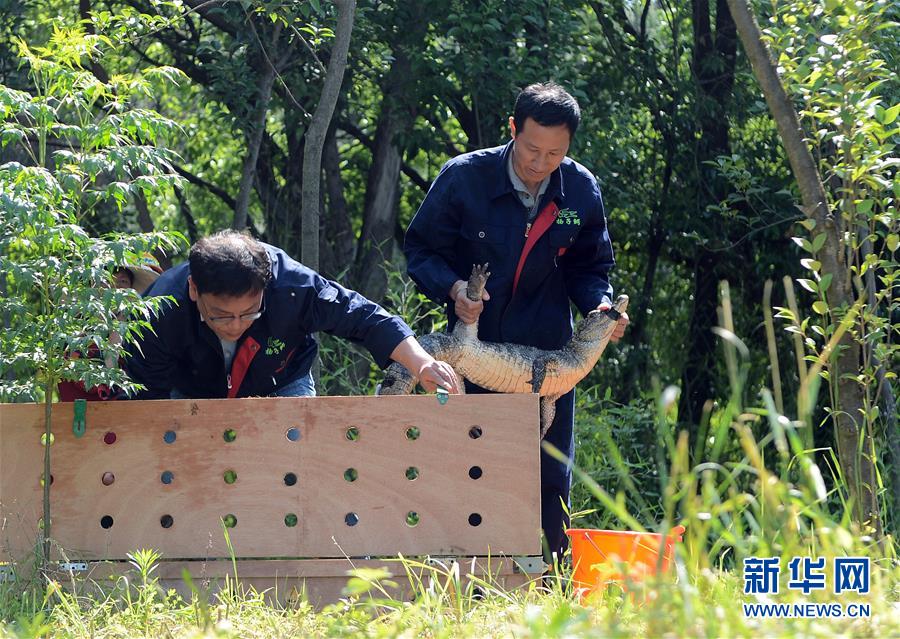 5月20日,工作人員準備放歸揚子鱷。當(dāng)日,安徽揚子鱷國家級自然保護區(qū)在安徽多地同時放歸揚子鱷,當(dāng)天共放歸人工繁育揚子鱷32條。該保護區(qū)計劃2020年野外放歸揚子鱷280條,剩余248條將在今后陸續(xù)放歸。新華社記者韓曉雨攝