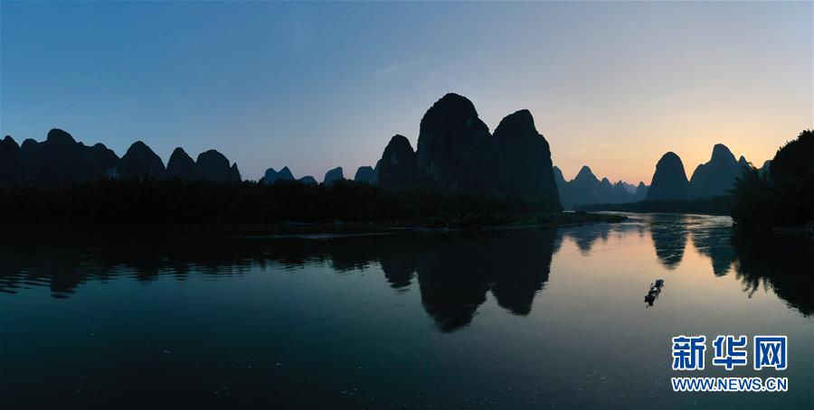 這是在廣西桂林市陽朔縣興坪鎮(zhèn)拍攝的山水風光(5月19日攝,無人機全景照片)?!吧n蒼森八桂,茲地在湘南。江作青羅帶,山如碧玉篸……”一千多年前,唐朝詩人韓愈寫盡桂林山水之美。初夏時節(jié),在廣西桂林市陽朔縣興坪鎮(zhèn),藍天白云下,煙雨朦朧中,桂林山水盡顯秀美。新華社記者 周華 攝