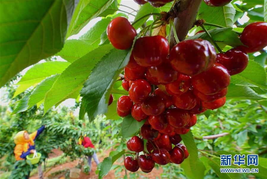5月24日,灤州市九百戶鎮(zhèn)雞冠山生態(tài)產(chǎn)業(yè)園的工人在采摘大櫻桃。新華社記者楊世堯攝