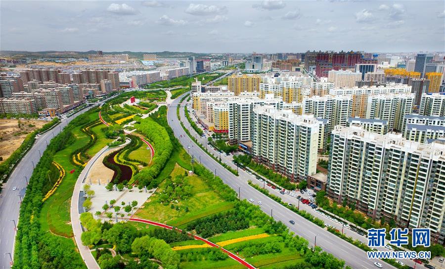 5月25日拍攝的榆林市高新區(qū)綠化走廊(無(wú)人機(jī)照片)。新華社記者陶明攝