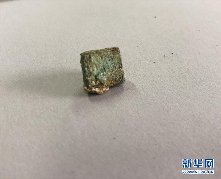 黃河邊大型古墓群出土的一組青銅材質(zhì)的筆帽(5月22日攝)。新華社記者李麗靜攝