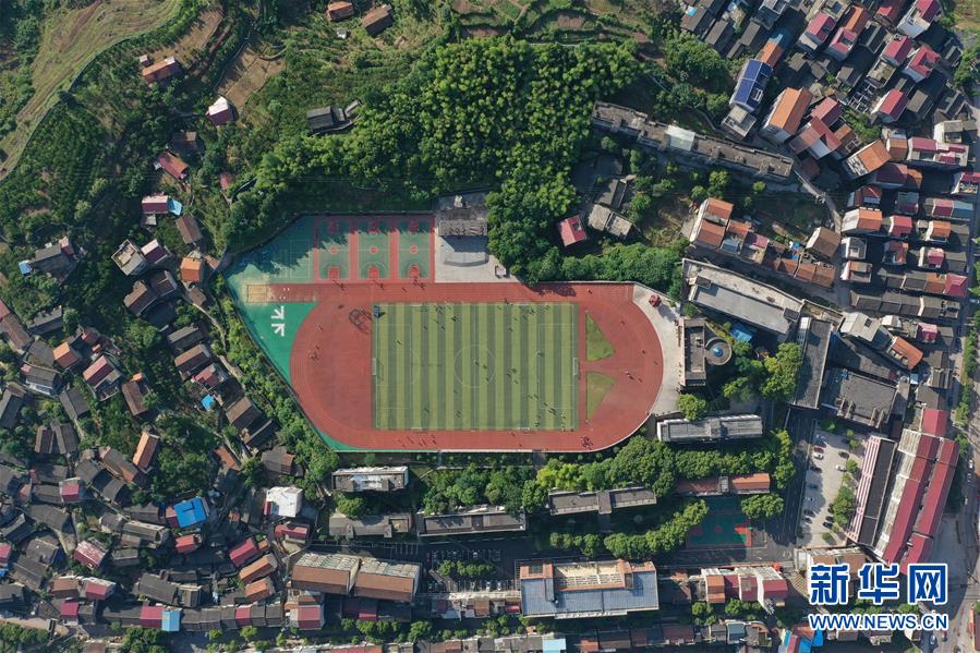 位于湖南省湘西土家族苗族自治州的瀘溪縣第五中學(xué)(5月22日攝,無人機(jī)照片)。新華社記者薛宇舸攝