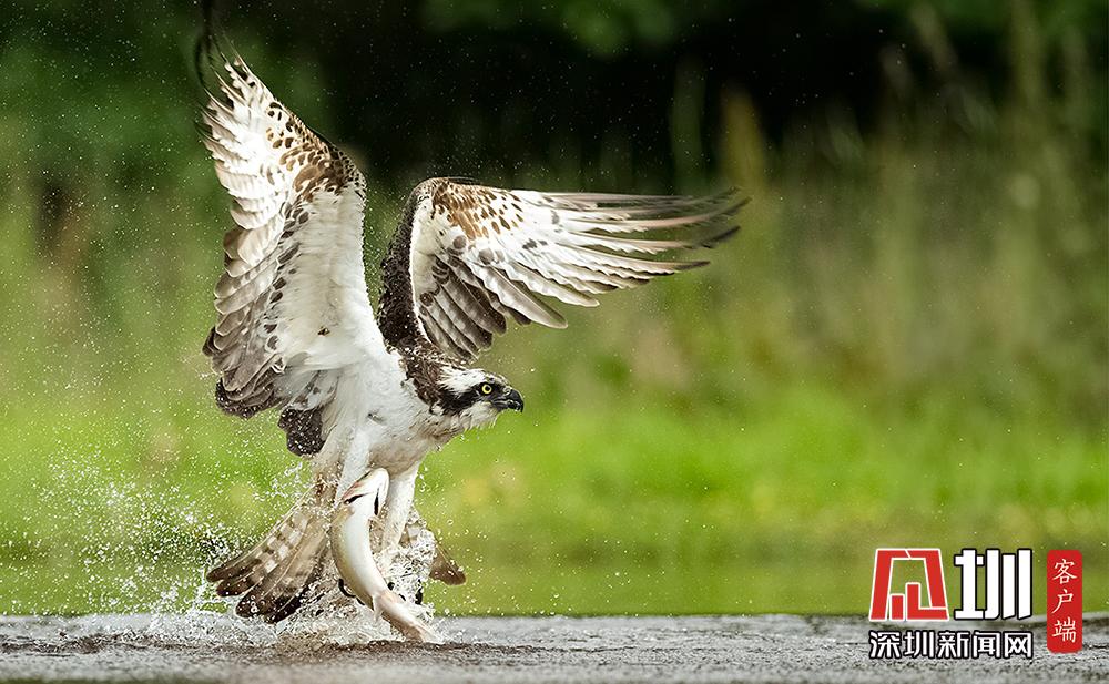 魚鷹俯沖入水捕魚 伺機(jī)而動“快準(zhǔn)狠”