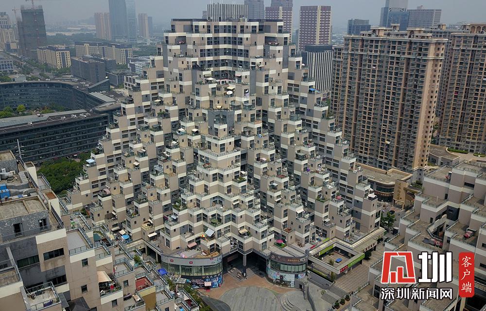 2018年7月29日,航拍江蘇省昆山市花橋國際商務城游站未來城小區(qū),空中俯瞰,由三棟樓盤組成的該小區(qū)造型奇特,高低錯落有致,酷似“金字塔”。