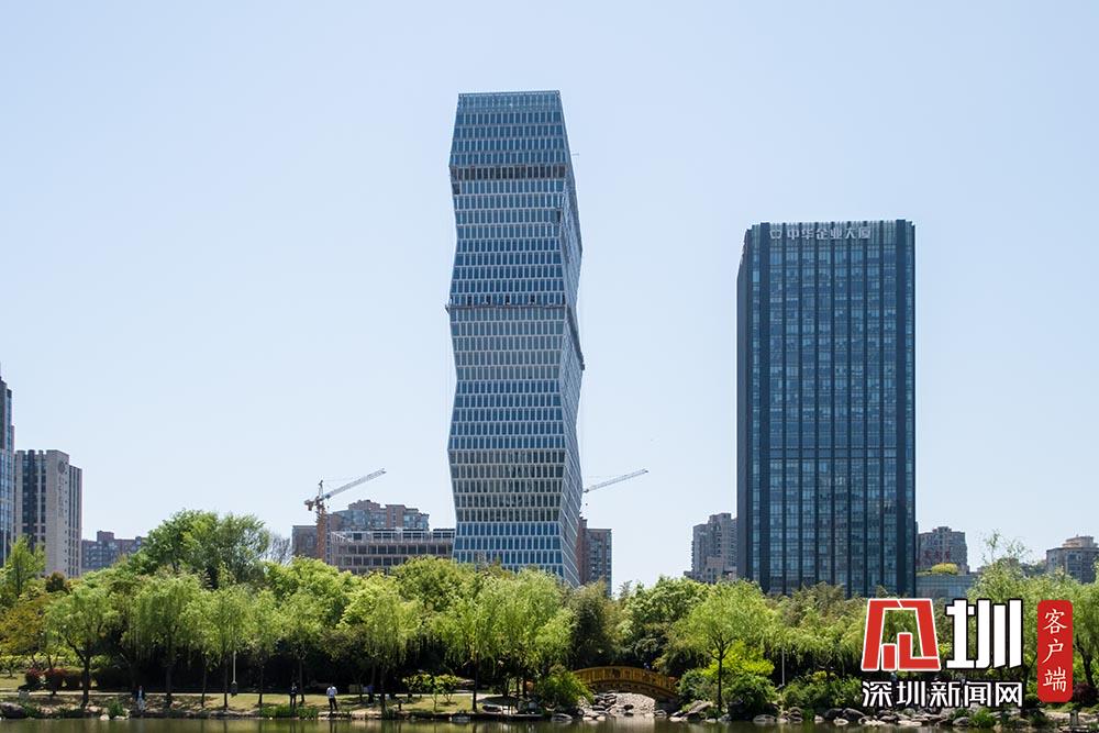 2018年4月10日,上海,長寧區(qū)古北商務區(qū)一新建超高層建筑造型頗為獨特,起伏收分層疊向上的體量和節(jié)節(jié)高的竹子頗為神似。從各個角度看,大樓的外邊都呈折線,有附近居民戲稱這幢大樓為“扭腰大樓”。