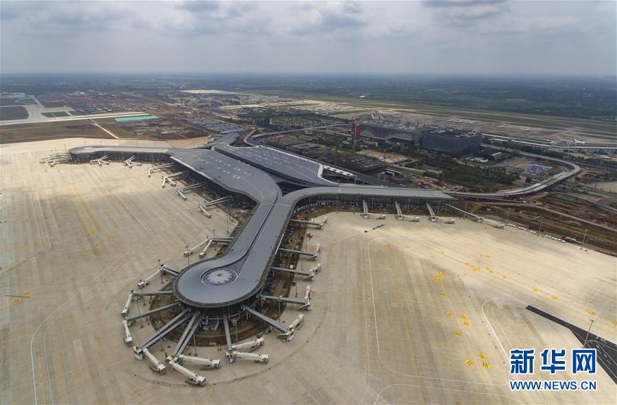 這是4月11日拍攝的建設(shè)中的海口美蘭國際機(jī)場二期項(xiàng)目航站樓(無人機(jī)照片)。新華社記者郭程攝