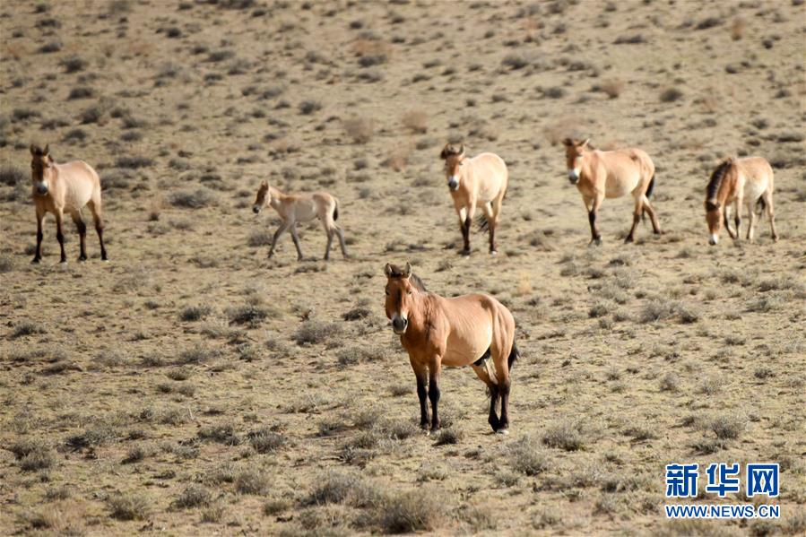 這是6月3日在新疆卡拉麥里山有蹄類野生動(dòng)物自然保護(hù)區(qū)拍攝的普氏野馬。新華社記者丁磊攝。