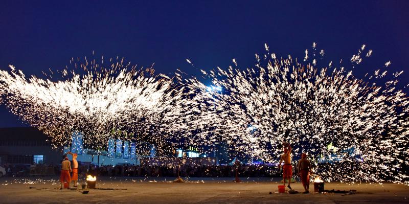 古老打鐵花技藝首現(xiàn)長(zhǎng)春 1700度鐵水空中開(kāi)花 現(xiàn)場(chǎng)市民大呼過(guò)癮