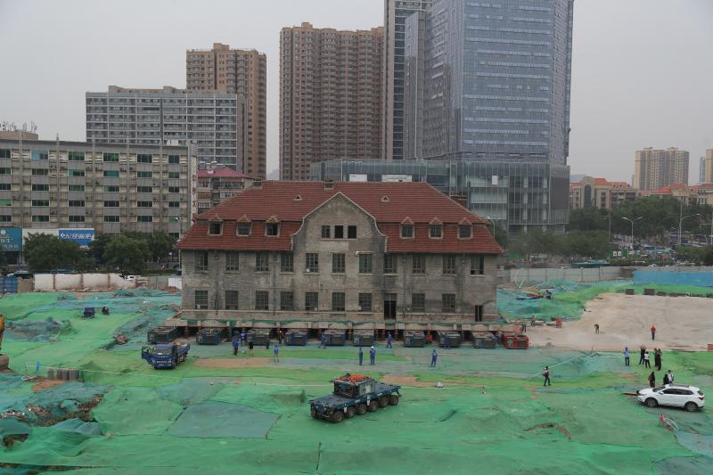 山東濟(jì)南2600噸百年修女樓坐“車(chē)”準(zhǔn)備平移