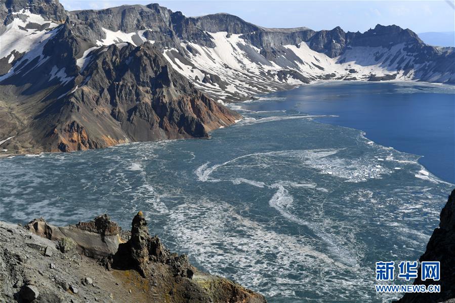 長白山天池迎來“開冰季”