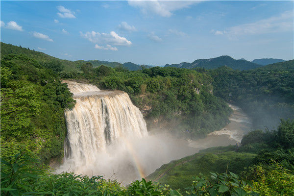 航拍黃果樹大瀑布直瀉山谷蔚為壯觀