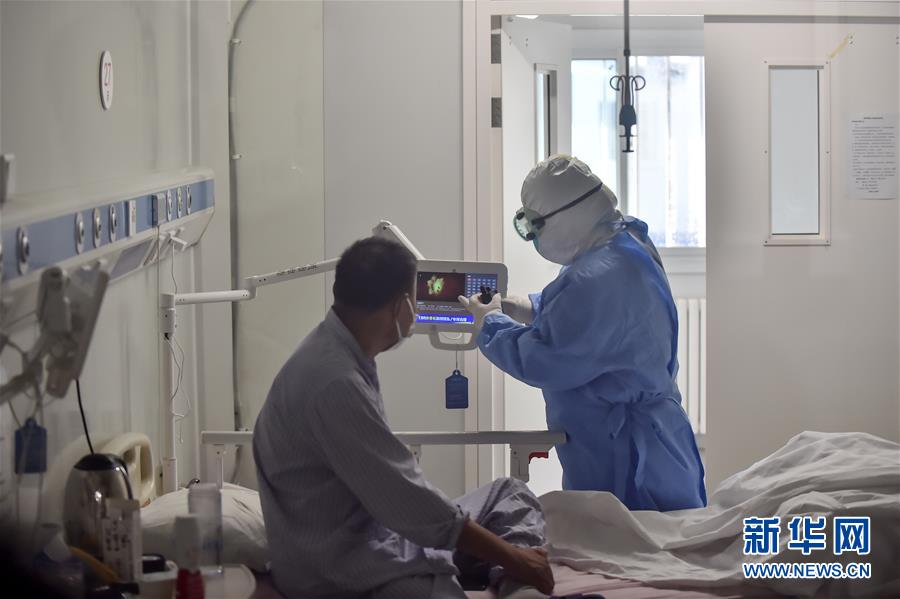6月16日,在北京地壇醫(yī)院隔離病房?jī)?nèi),護(hù)士檢查患者輸液情況。當(dāng)日下午,記者探訪北京市收治新冠肺炎患者的地壇醫(yī)院隔離病房。6月11日以來,北京連續(xù)發(fā)現(xiàn)新冠肺炎確診病例。截至6月16日零時(shí),新增確診病例已達(dá)106例。目前,北京市報(bào)告的確診患者均在地壇醫(yī)院治療。新華社記者 彭子洋 攝