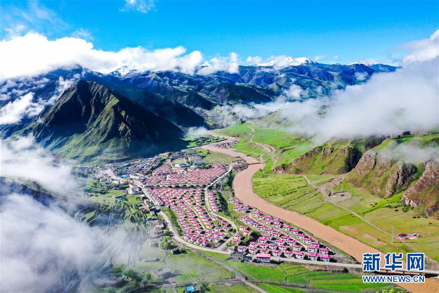 位于丁青縣嘎曲河畔的尺牘鎮(zhèn)易地扶貧搬遷點(diǎn)(6月14日攝,無人機(jī)照片)。新華社記者 白少波 攝