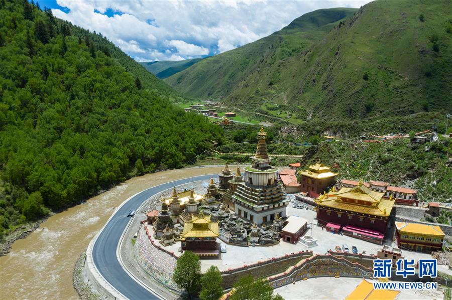 四川省阿壩藏族羌族自治州壤塘縣棒托石刻公園(6月13日攝,無人機照片)。新華社記者 沈伯韓 攝