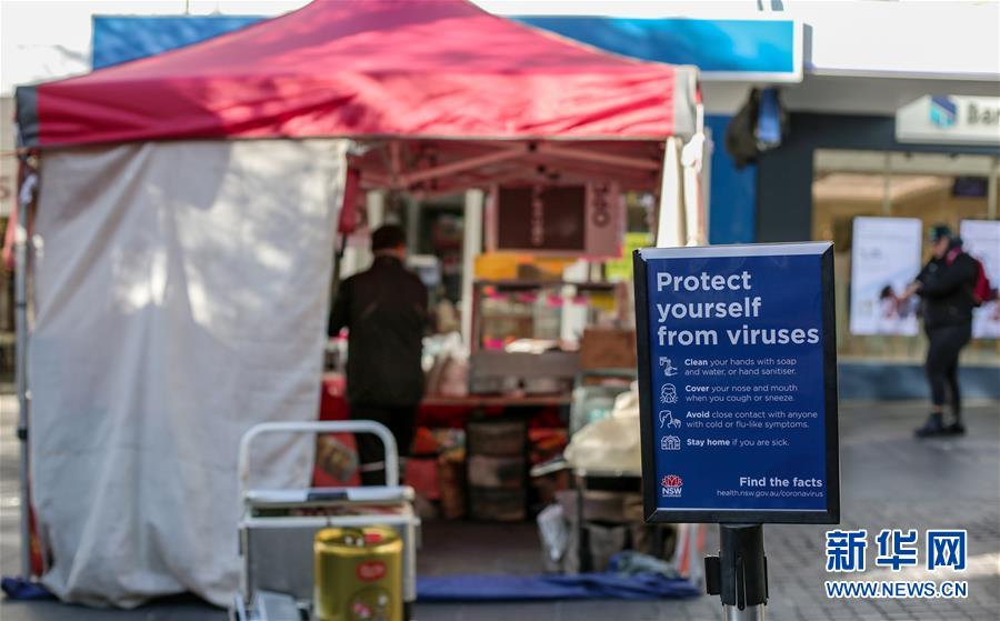 這是6月19日在澳大利亞悉尼查茨伍德鎮(zhèn)拍攝的攤位前的疫情防控提示。新華社記者白雪飛攝