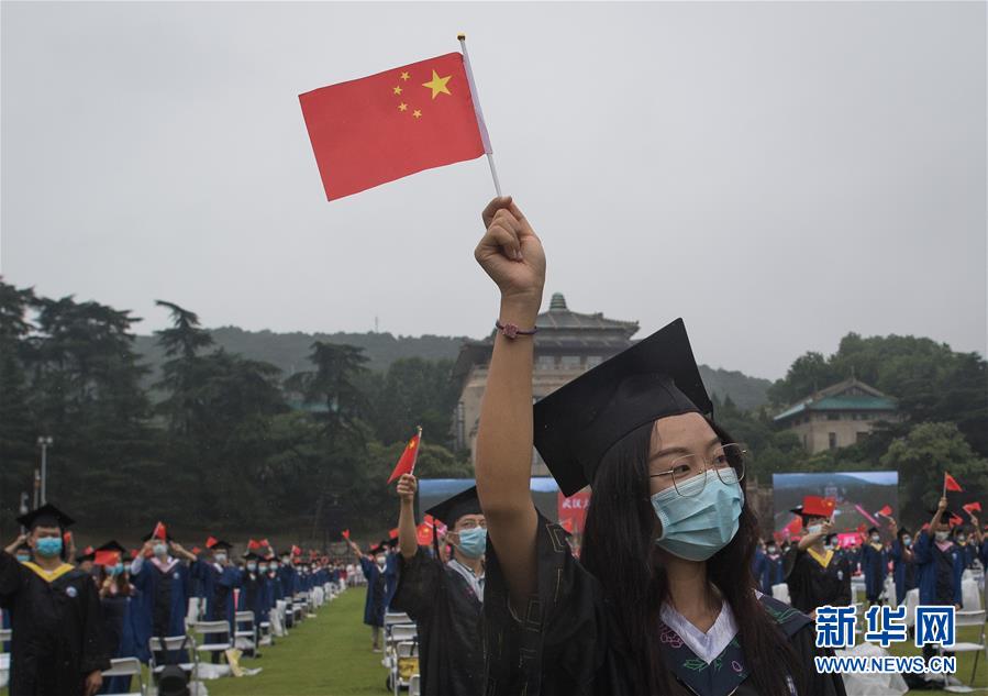 6月20日,在畢業(yè)典禮上,師生共同向新冠肺炎疫情犧牲烈士和逝世同胞默哀。新華社記者 肖藝九 攝