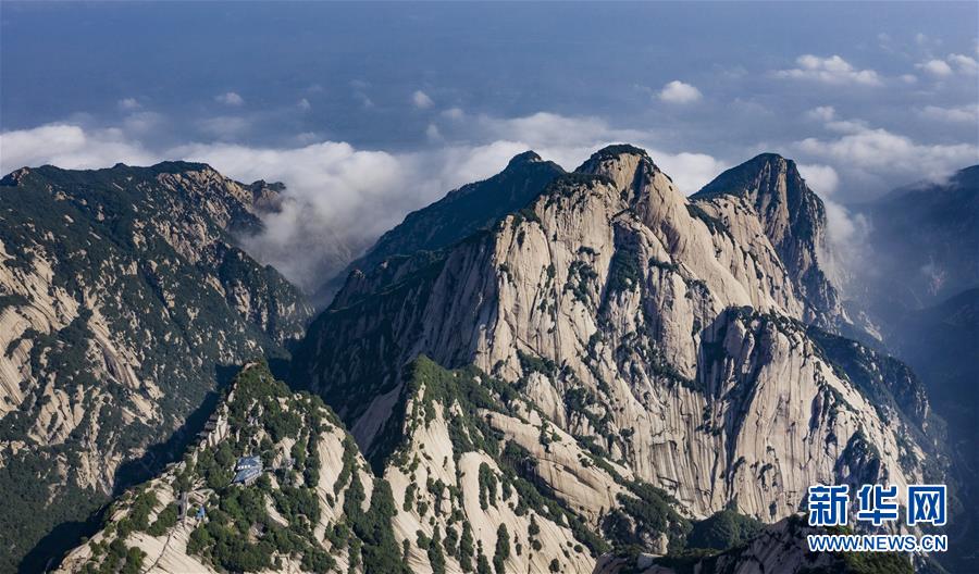 6月18日拍攝的華山北峰(無人機照片)。當日,西岳華山經(jīng)歷連續(xù)三天暴雨后,迎來燦爛的陽光。新華社記者 陶明 攝