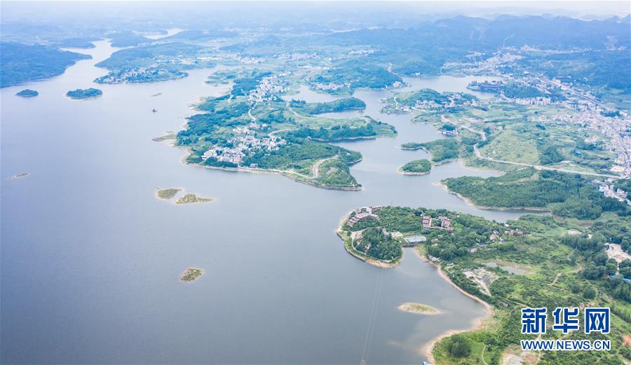6月21日拍攝的紅楓湖景區(qū)風(fēng)光(無人機照片)。夏至?xí)r節(jié),貴州省清鎮(zhèn)市紅楓湖景區(qū)草木蒼翠,秀麗的湖光山色吸引不少游客前來游玩。新華社記者陶亮攝