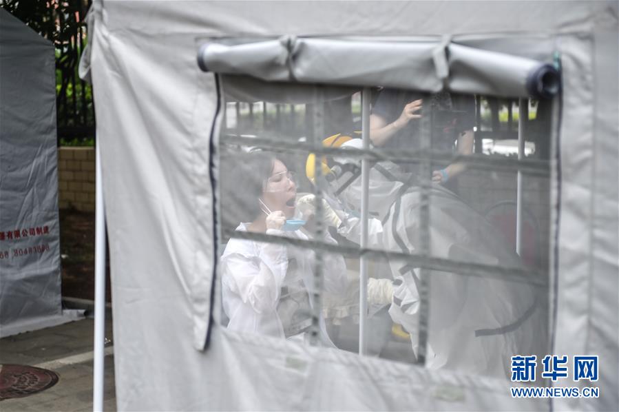 6月15日,在北京市東城區(qū)地壇體育館外的采樣點(diǎn),市民在進(jìn)行核酸檢測(cè)采樣。新華社記者彭子洋攝