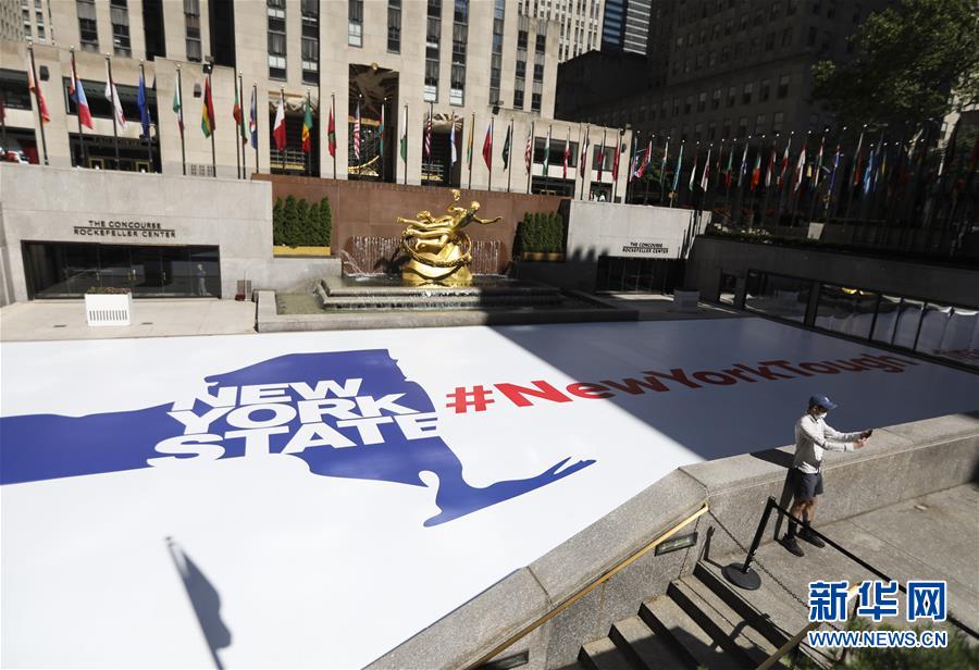 6月22日,在美國紐約洛克菲勒中心,一名男子在寫有“紐約堅強(qiáng)”字樣的廣場自拍。美國約翰斯·霍普金斯大學(xué)22日發(fā)布的新冠疫情最新統(tǒng)計數(shù)據(jù)顯示,美國累計死亡病例超過12萬例。新華社記者王迎攝