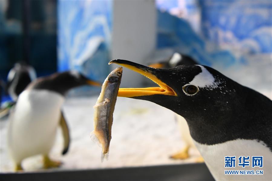 6月24日,哈爾濱極地館的企鵝在享用工作人員送來的美食。當(dāng)日,哈爾濱極地館的工作人員特地準(zhǔn)備了“魚粽”“肉粽”,讓生活在這里的極地動物也品嘗一下端午美食。新華社記者王建威攝