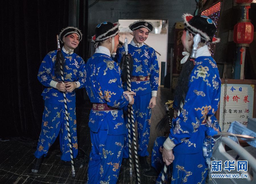 6月26日,在武漢市人民劇院,演員們在登臺前準備。新華社記者 肖藝九 攝
