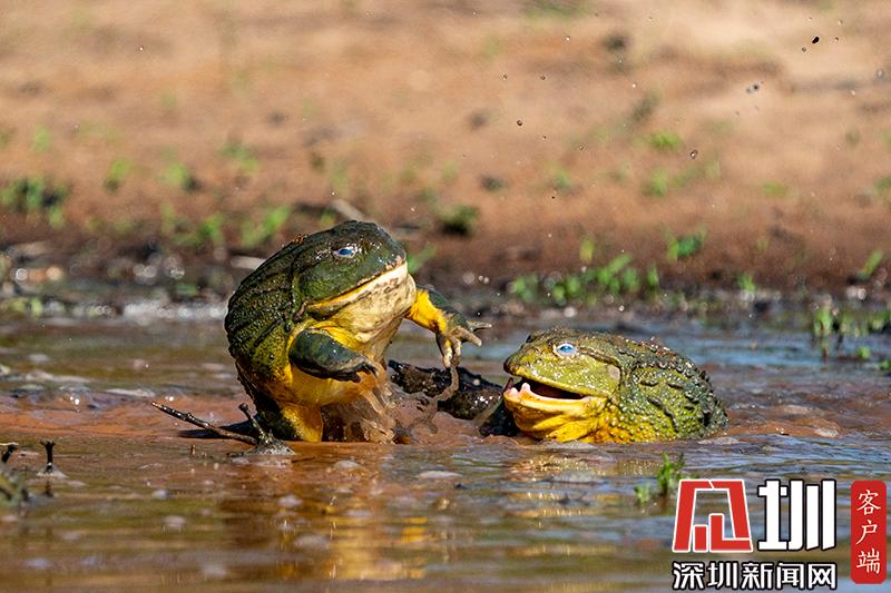 上演“全武行”!非洲雄性牛蛙為爭(zhēng)奪雌性伴侶大打出手