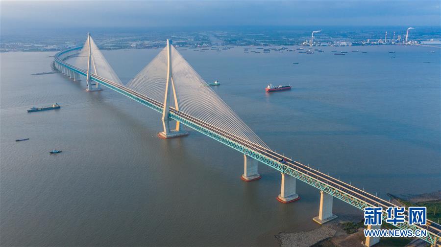 滬蘇通長江公鐵大橋(6月29日攝,無人機(jī)照片)。即將于7月1日通車的滬蘇通長江公鐵大橋北起江蘇南通,南至江蘇張家港,公鐵合建跨江正橋全長5827米,為集合高速公路、客貨混線鐵路、高速鐵路的“三合一”過江通道,建成通車后將有效促進(jìn)長三角城市群跨江融合、協(xié)同發(fā)展。新華社記者李博攝