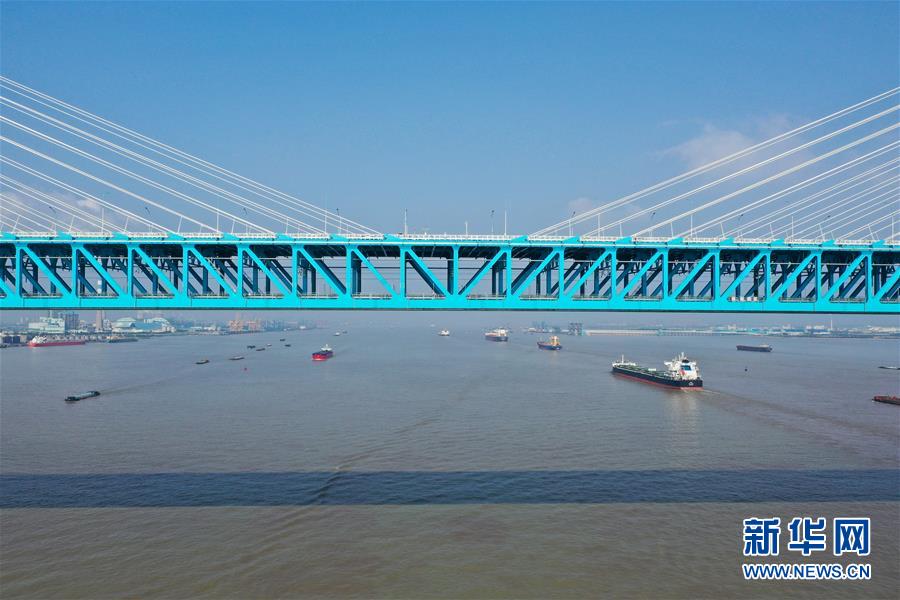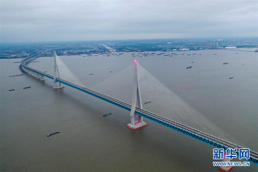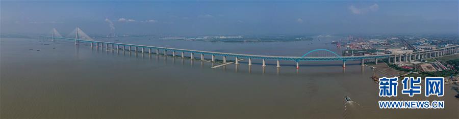 滬蘇通長(zhǎng)江公鐵大橋(6月30日攝,無(wú)人機(jī)全景拼接照片)。即將于7月1日通車的滬蘇通長(zhǎng)江公鐵大橋北起江蘇南通,南至江蘇張家港,公鐵合建跨江正橋全長(zhǎng)5827米,為集合高速公路、客貨混線鐵路、高速鐵路的“三合一”過(guò)江通道,建成通車后將有效促進(jìn)長(zhǎng)三角城市群跨江融合、協(xié)同發(fā)展。新華社記者李博攝
