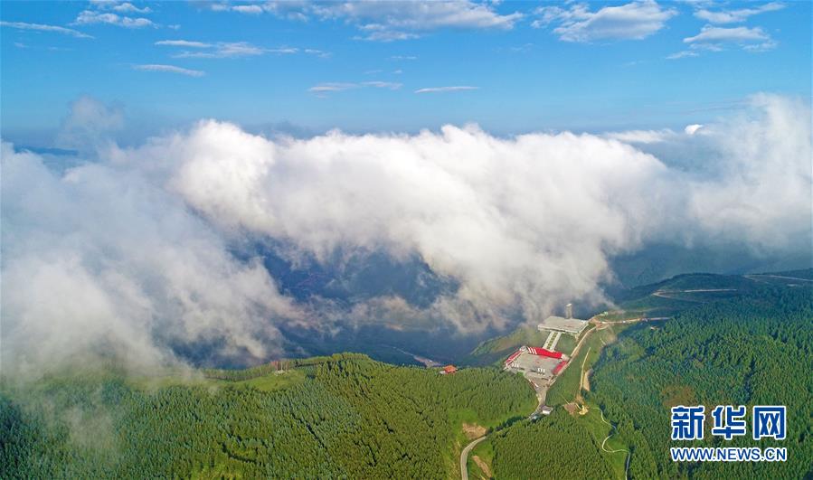 位于寧夏固原市隆德縣境內(nèi)的六盤山紅軍長征紀(jì)念亭(無人機(jī)照片,2018年8月29日攝)。新華社記者王鵬攝
