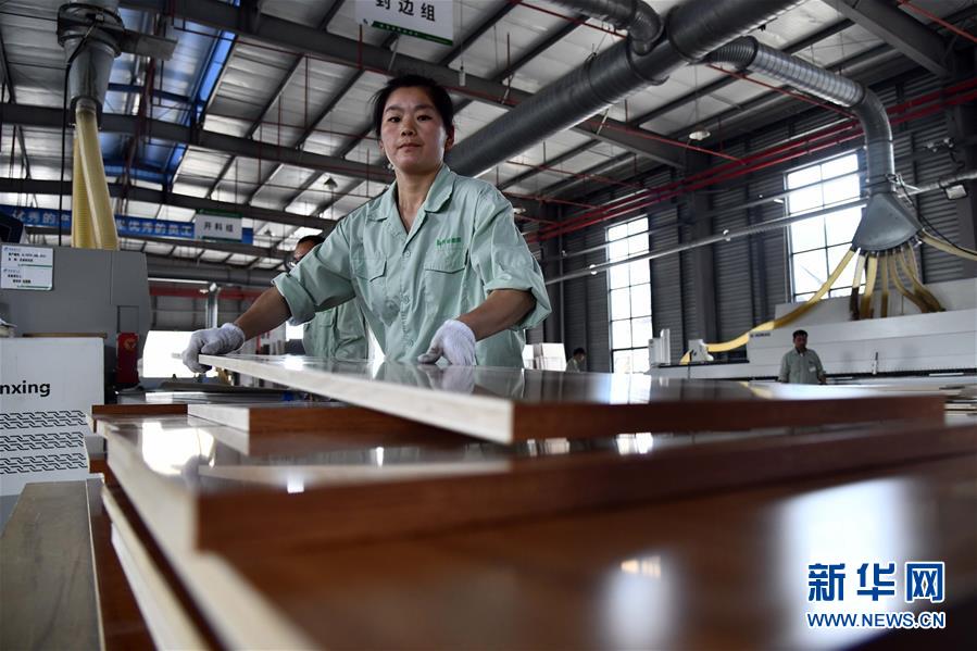 6月30日,在費縣云峰莫干山裝飾材料有限公司,工人在加工定制家具面板。地處沂蒙革命老區(qū)的山東省臨沂市費縣探沂鎮(zhèn)近年來圍繞鄉(xiāng)村振興戰(zhàn)略,謀劃“一鎮(zhèn)一業(yè)”,以木業(yè)產(chǎn)業(yè)為抓手,積極引導(dǎo)全鎮(zhèn)3136家木業(yè)企業(yè)進(jìn)行園區(qū)化、集約化、智能化發(fā)展,成為遠(yuǎn)近聞名的“木業(yè)特色小鎮(zhèn)”。2019年,該鎮(zhèn)規(guī)模以上工業(yè)總產(chǎn)值187億元,農(nóng)民人均純收入2萬元左右,木業(yè)產(chǎn)業(yè)有力助推當(dāng)?shù)氐泥l(xiāng)村振興。新華社記者郭緒雷攝