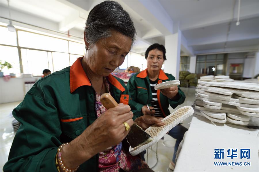 7月2日,臨夏縣百利布鞋加工農(nóng)民專業(yè)合作社員工在加工布鞋。甘肅省臨夏回族自治州臨夏縣將布鞋加工定為重點(diǎn)扶持發(fā)展的產(chǎn)業(yè),采用“政府+公司+貧困戶”的產(chǎn)業(yè)扶貧模式,由政府主導(dǎo)、企業(yè)出資,在貧困村建設(shè)“扶貧車間”,吸納貧困群眾從事布鞋加工產(chǎn)業(yè)增加收入。截至2019年底,當(dāng)?shù)夭夹庸て髽I(yè)和加工戶遍及近百個(gè)行政村,從業(yè)人員達(dá)到4000多人,累計(jì)生產(chǎn)布鞋600多萬雙,實(shí)現(xiàn)銷售收入2.32億元。新華社記者范培珅攝