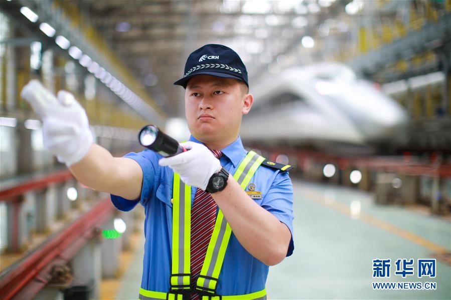 7月3日,擔(dān)任首發(fā)列車值乘工作的隨車機械師在貴陽亮相。 新華社記者 劉續(xù) 攝